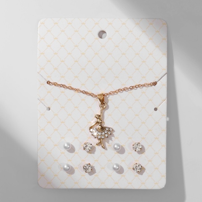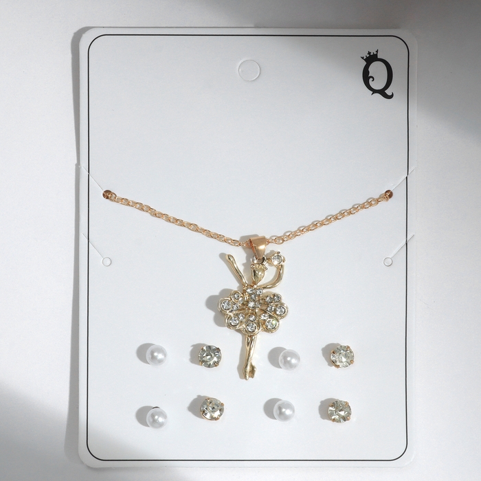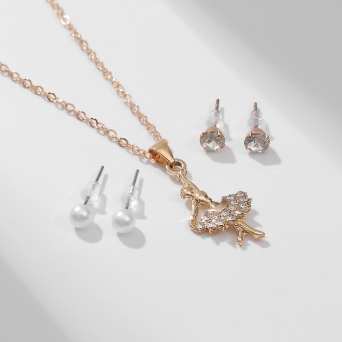 Гарнитур 5 предметов: 4 пары пусет, кулон «Балерина», цвет белый в золоте, 43 см