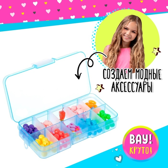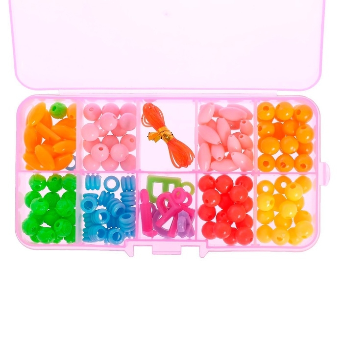 - В комплекте 5 видов бусин, стретч-леска, кейс для хранения.