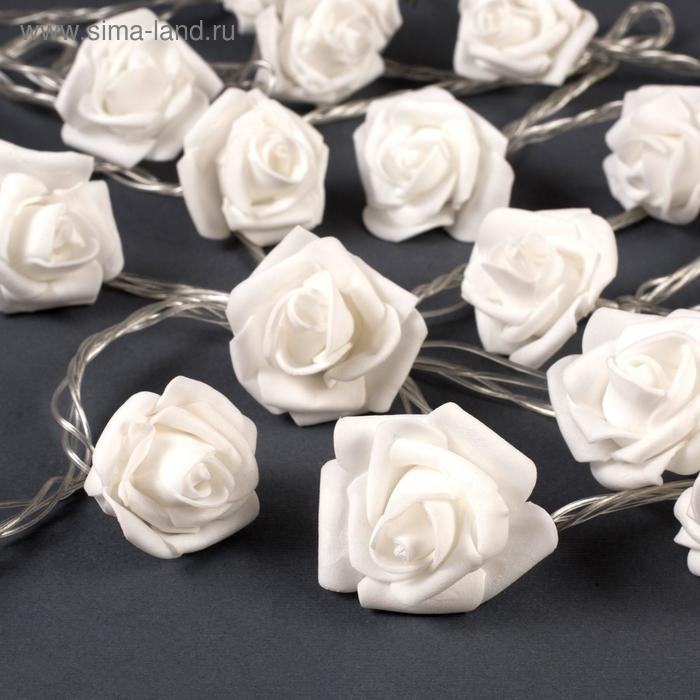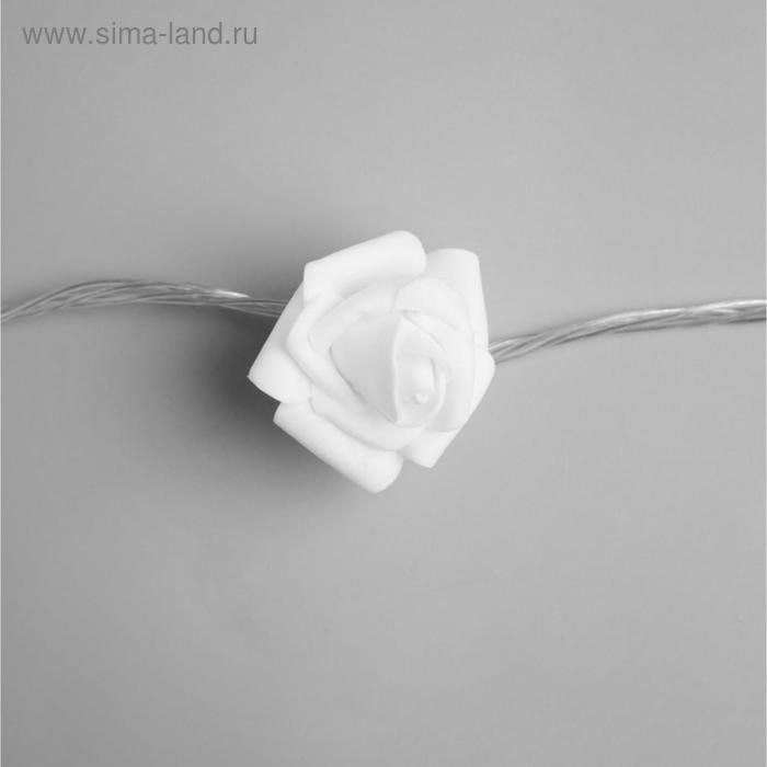 Гирлянда «Нить» 5 м с насадками «Розы белые», IP20, прозрачная нить, 20 LED, свечение тёплое белое, 220 В