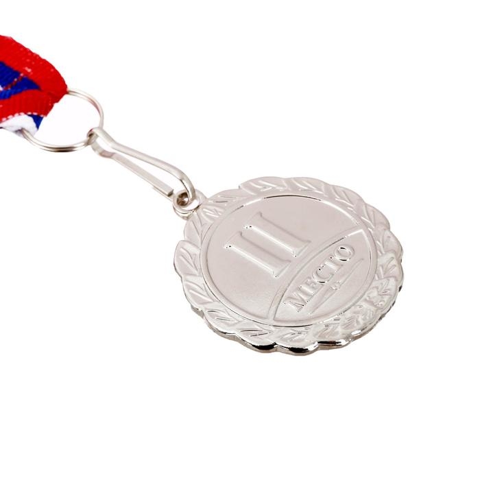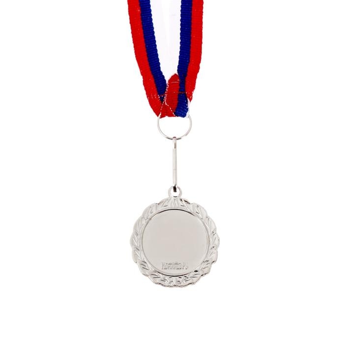Медаль призовая 013, d= 5 см. 2 место, триколор. Цвет серебро. С лентой