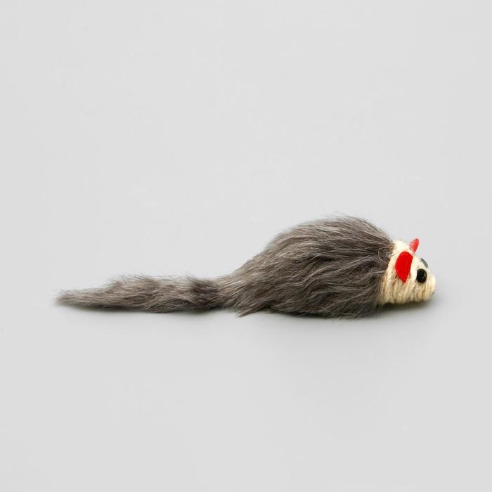 Игрушка для кошек "Серая мышь" с мордочкой из сизаля, 8 см