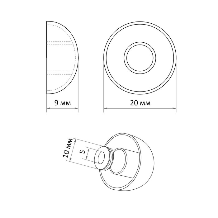 Зеркалодержатель "Полусфера", d=20 мм, цвет хром, 4 шт.