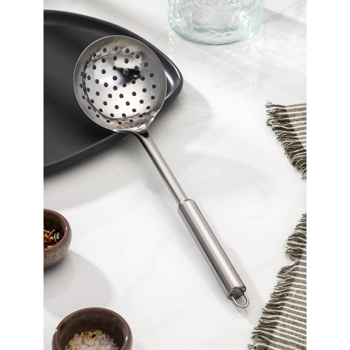 Шумовка из нержавеющей стали Доляна «Стандарт», h=32 см, цвет серебряный