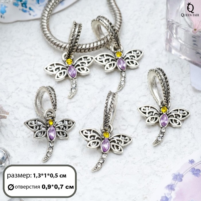 Подвеска «Стрекоза с ажурными крылышками», цвет жёлто-фиолетовый в серебре