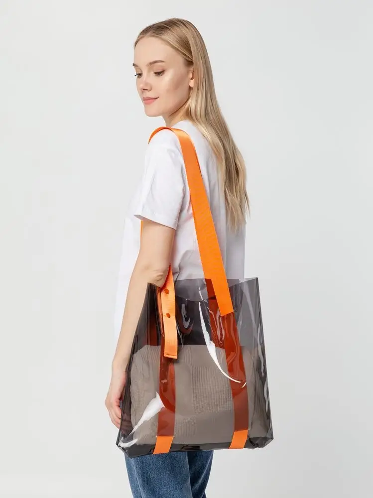 Шопер Clear Fest, прозрачный серый с оранжевыми ручками