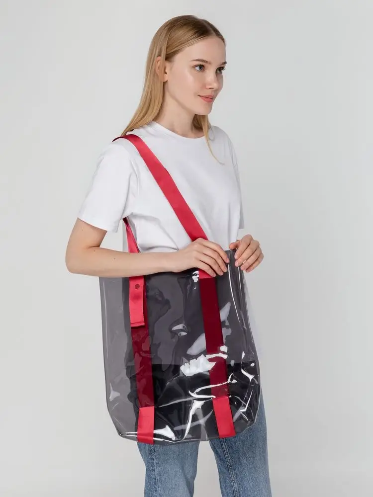 Шопер Clear Fest, прозрачный серый с красными ручками