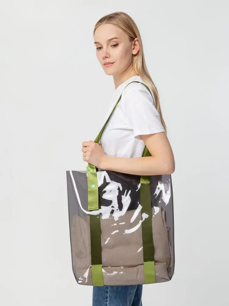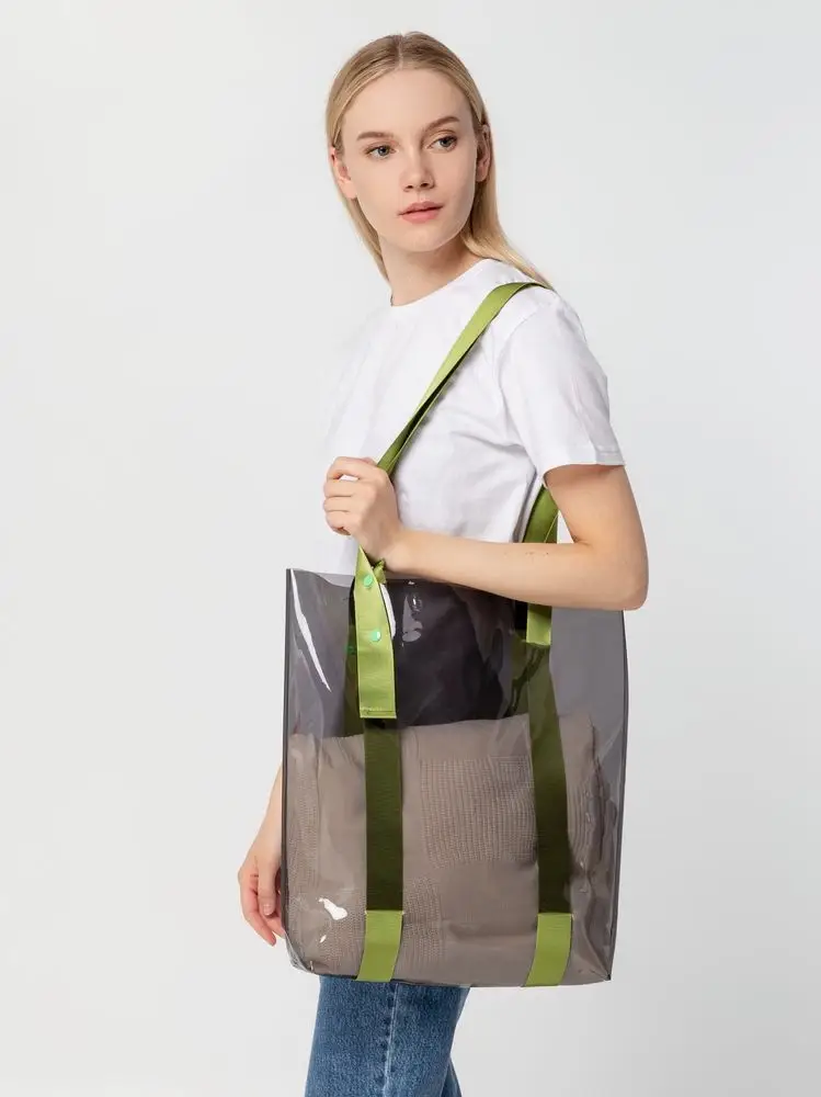 Шопер Clear Fest, прозрачный серый с зелеными ручками