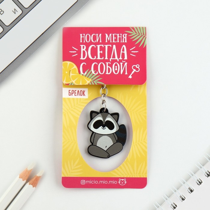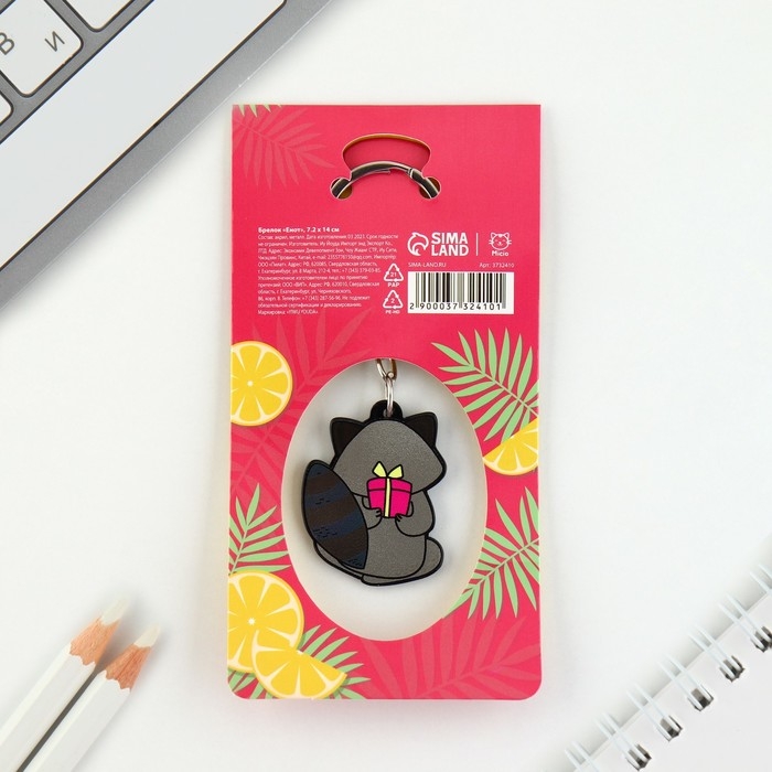 Брелок для ключей акриловый «Енот», 7.2 х 14 см