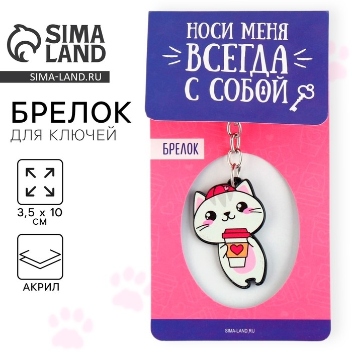 Брелок для ключей акриловый «Котик», 3,5 х 10 см