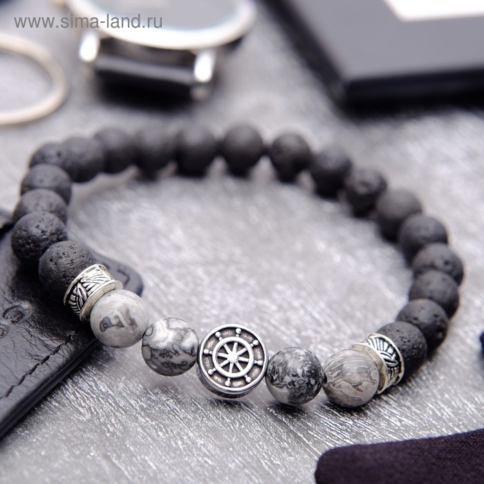 Браслет мужской «Бастион» штурвал, цвет чёрно-серый с серебром, d=7 см