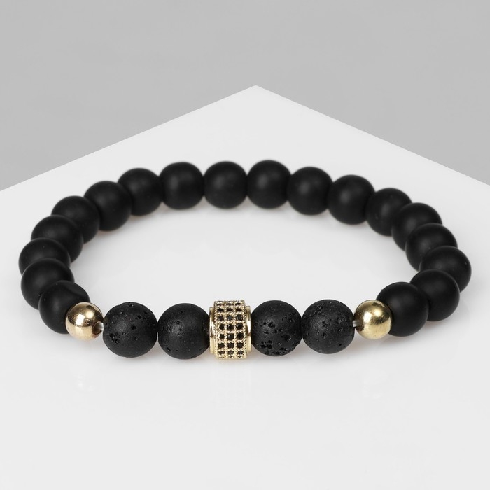 Браслет унисекс «Бастион» бусины, цвет чёрный с золотом, d=7 см