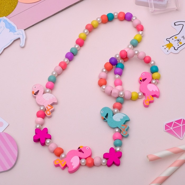 Набор детский «Выбражулька» 2 предмета: бусы, браслет, фламинго, цветной
