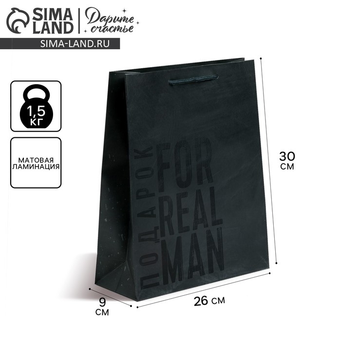 Пакет подарочный ламинированный вертикальный, упаковка, «Мужская воля», M 25.5 х 30 х 9 см
