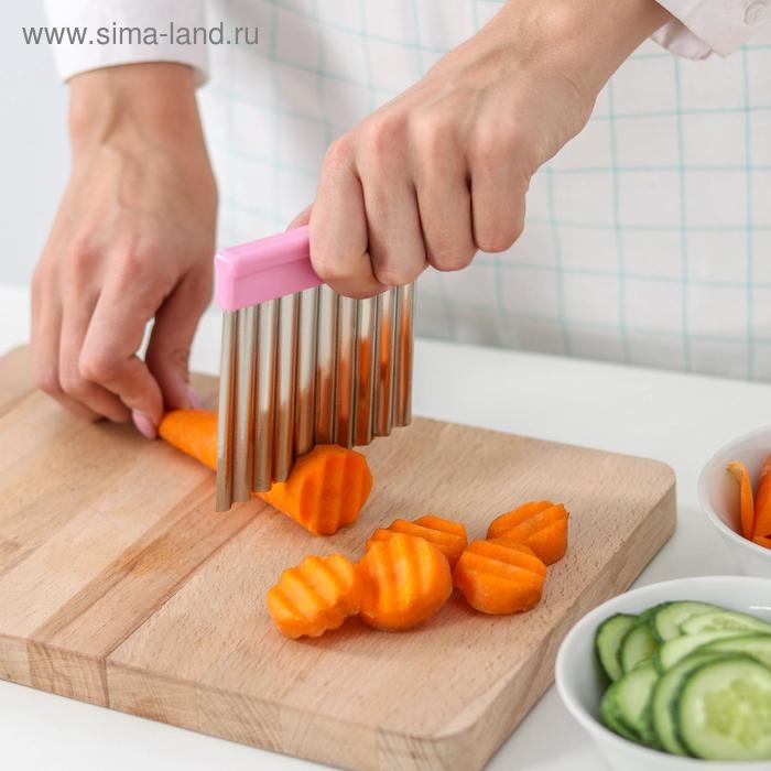 Ножи для декоративной нарезки овощей и фруктов сегодня пользуются популярностью. Изделие имеет характерное лезвие с выпуклыми зубцами по всему прямому полотну. При нарезании продуктов он придаёт поверхности ломтиков красивую волнистую форму.