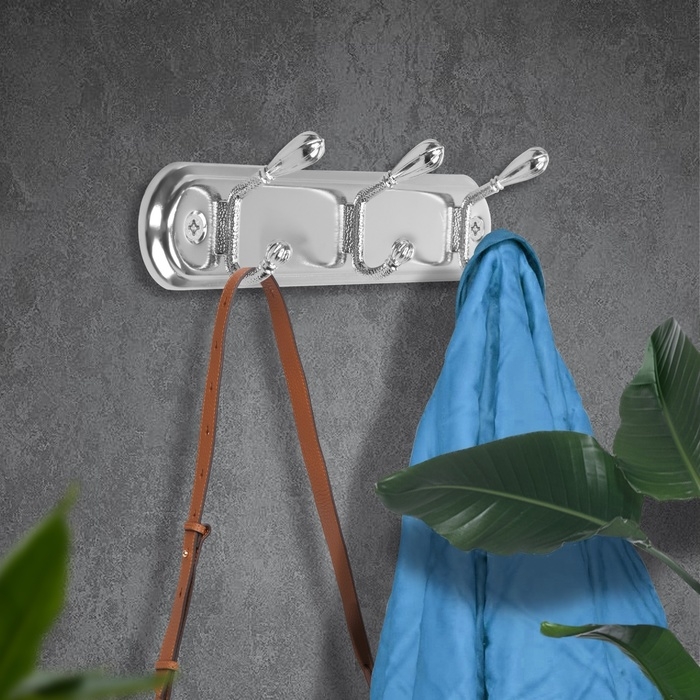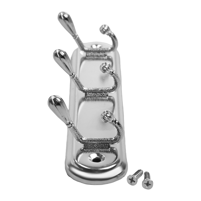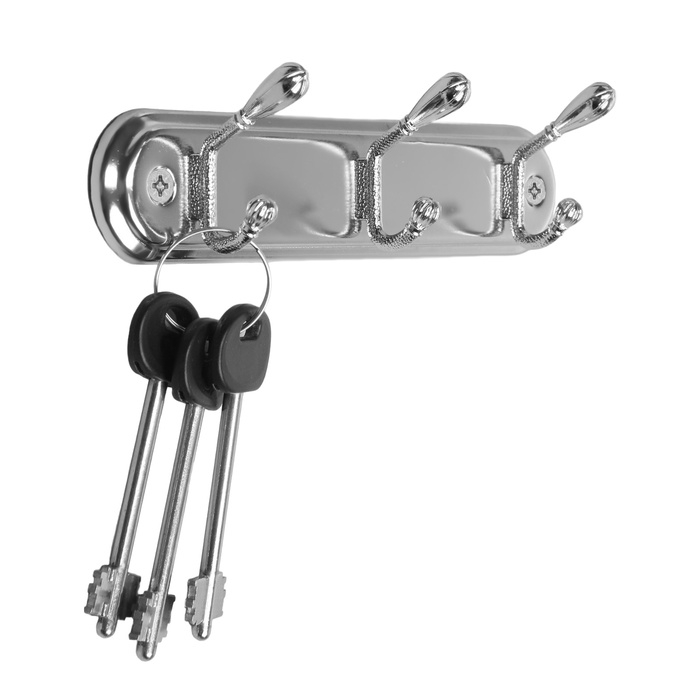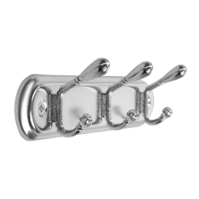 Вешалка ТУНДРА TVT005, металлическая, трёхрожковая, цвет хром