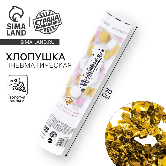 Хлопушка пневматическая «Поздравляем» 20 см