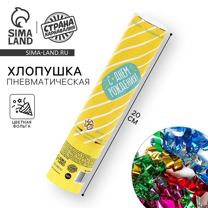 Хлопушка пневматическая «С Днём Рождения», 20 см