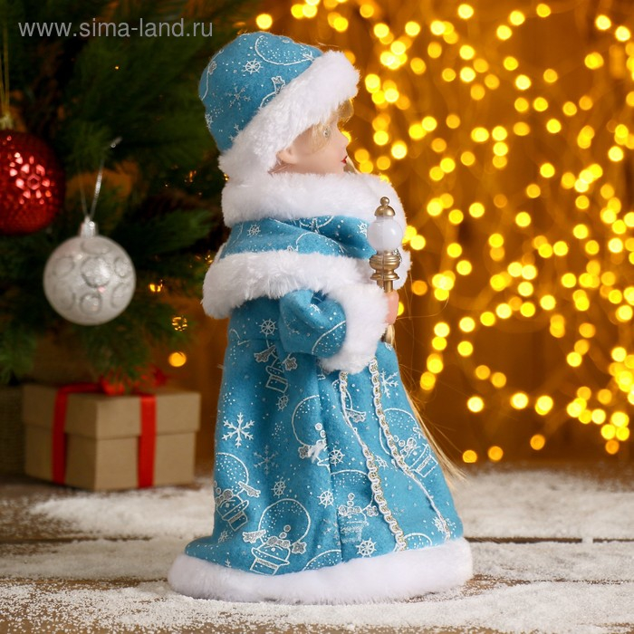 Снегурочка "Голубая шубка, с посохом" с подсветкой, двигается, 30 см, голубой