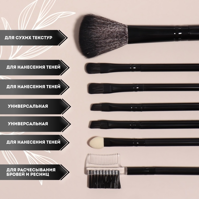 Набор кистей для макияжа, 7 предметов, чехол на молнии, цвет чёрный