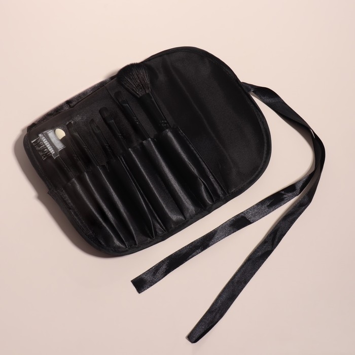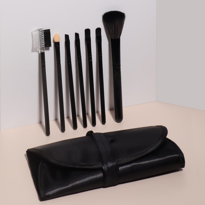 Набор кистей для макияжа, 7 предметов, чехол на завязках, цвет чёрный