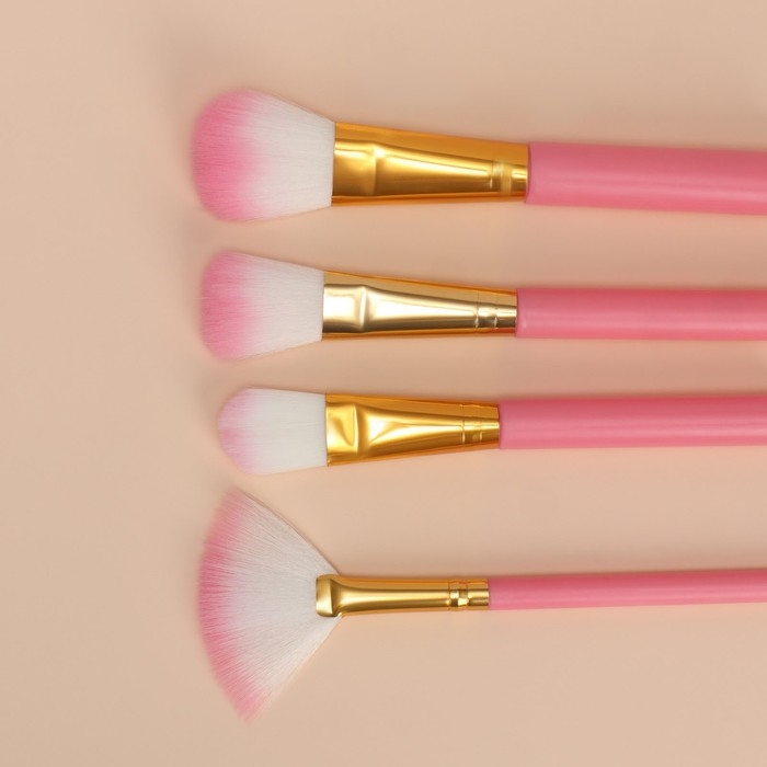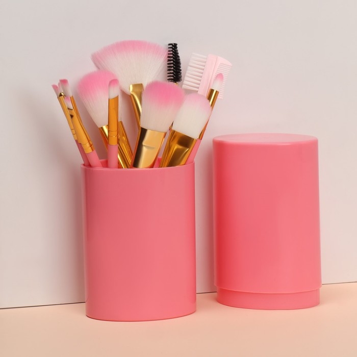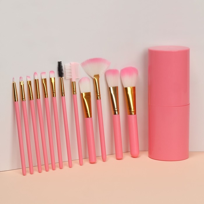 Набор кистей для макияжа, 12 предметов, футляр, цвет розовый