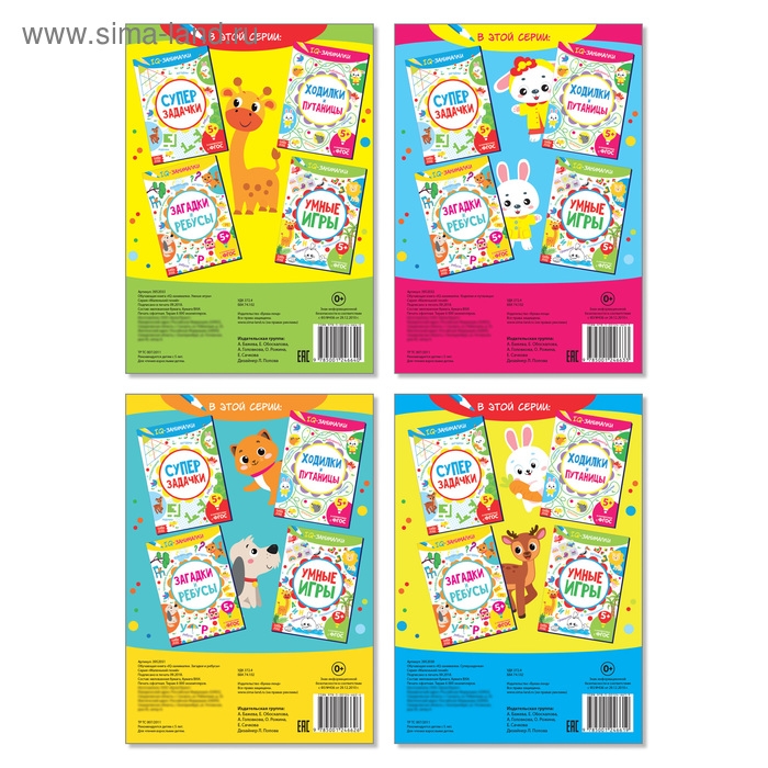 Книги «IQ-занималки», набор 4 шт. по 20 стр.