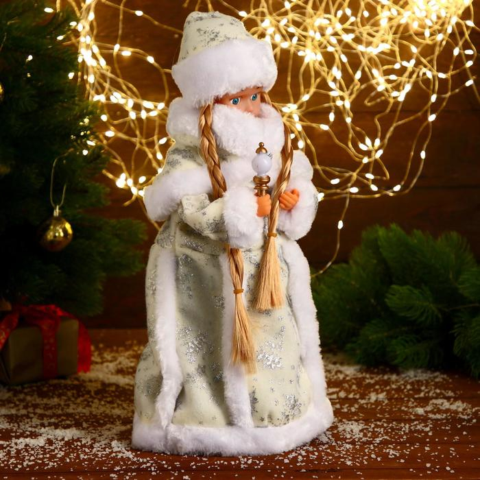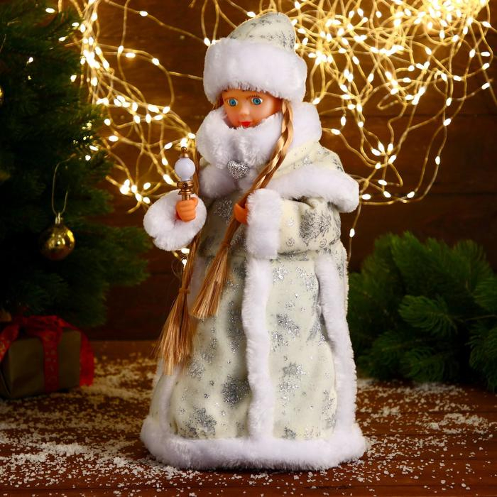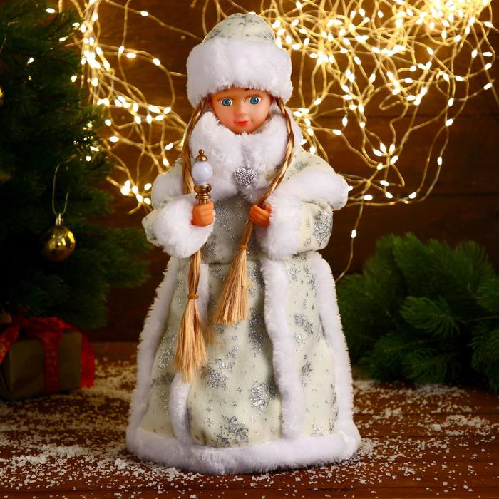 Снегурочка "Белая шубка, с посошком" двигается 40 см