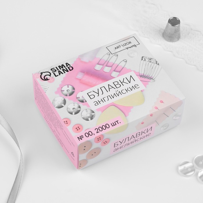 Булавки английские, 22 мм, 2000 шт, цвет серебряный