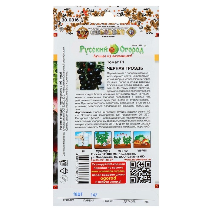 Семена Томат "Черная гроздь" F1, серия Русский огород, 10 шт