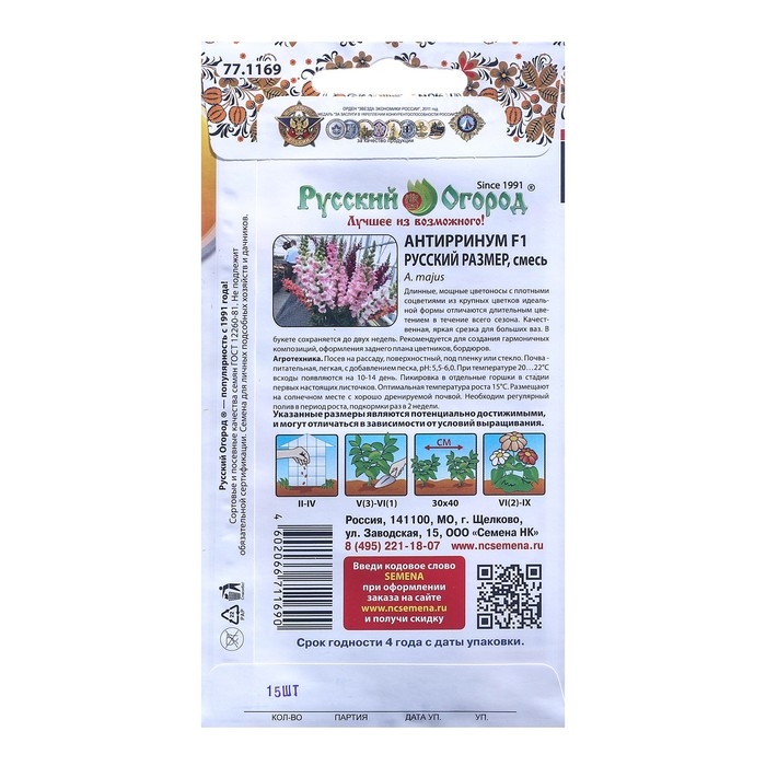 Семена цветов Антирринум F1 серия Русский Размер, смесь, О, 15 шт