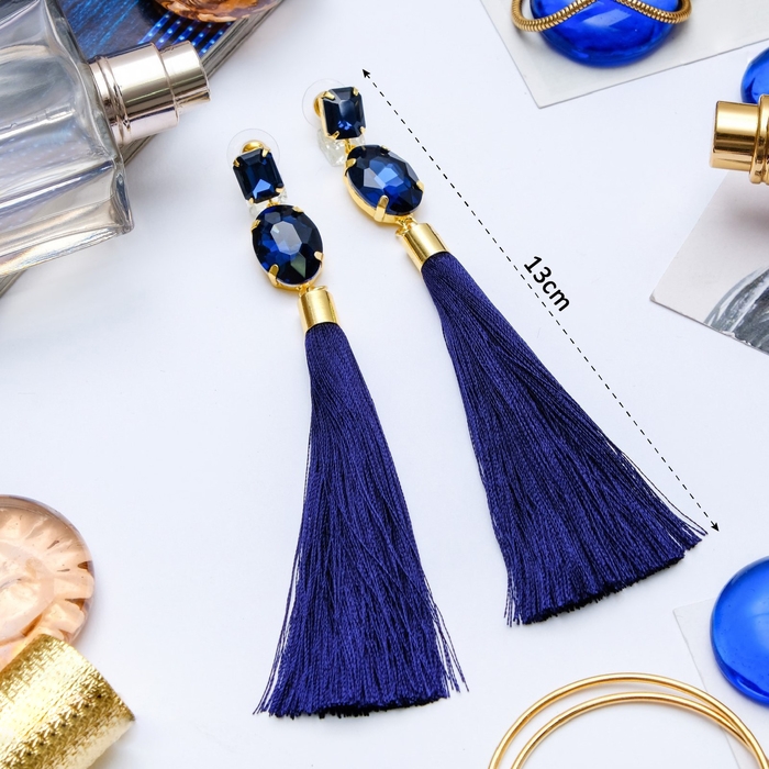 Серьги ассорти «Кисти» блеск вечера, две фигуры, цвет синий, L кисти 8 см