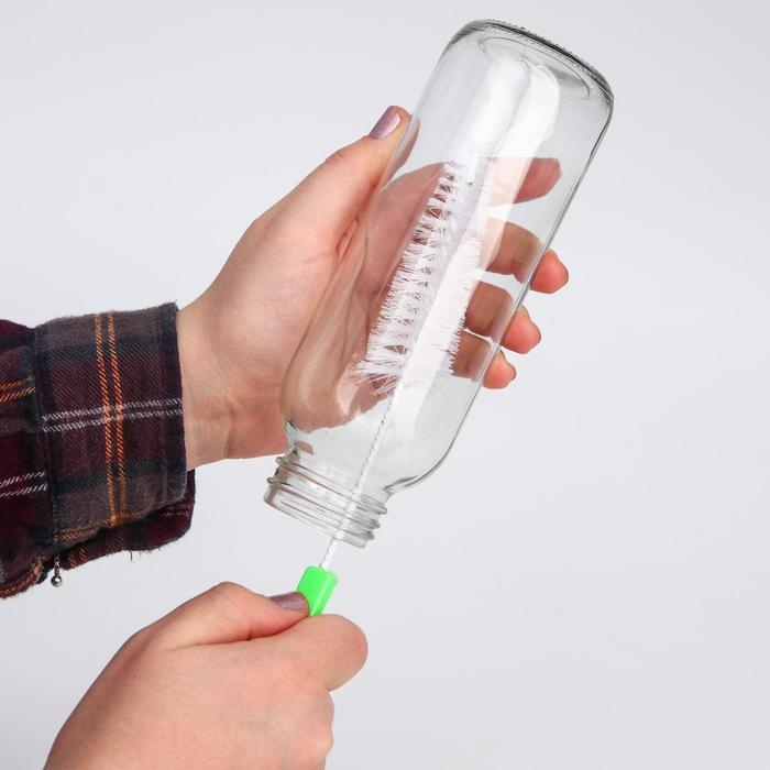 Данная модель легко и быстро устранит загрязнения. Щетина изготовлена из прочного и долговечного материала — нейлона. Покрутите ручку, чтобы смыть налёт со дна и выступов, и удалите остатки пищи, совершая вертикальные движения. На конце ручки находится маленький ёршик для мытья сосок.