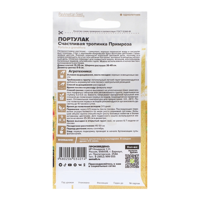 Семена цветов Портулак "Счастливая тропинка" Примроза, О, цп, 5 шт