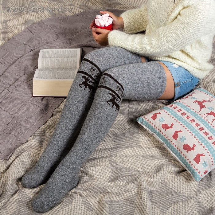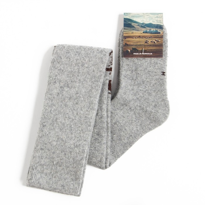 Чулки женские из монгольской шерсти с рисунком, цвет серый, размер 23-25