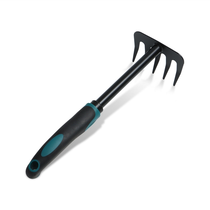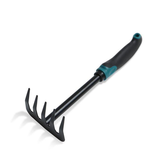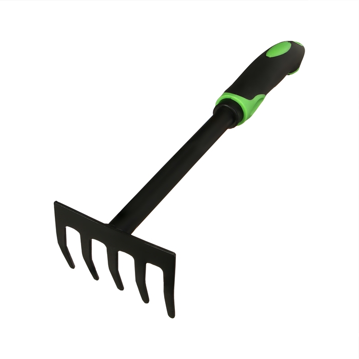 Грабли малые, прямые, 5 зубцов, длина 28,5 см, металл, эргономичная прорезиненная ручка, Greengo