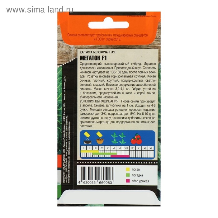 Семена Капуста Мегатон белокочанная F1. Среднепоздний гибрид белокочанной капусты для свежего потребления и квашения – 102 дня после высадки рассады в грунт.