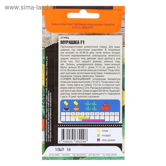 Семена Огурец "Мурашка" F1, раннеспелый, партенокарпический, 10 шт