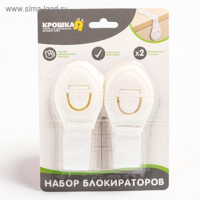 Набор блокираторов для дверей и ящиков, на ленте, универсальные, тканевые, 2 шт., цвет белый, Крошка Я