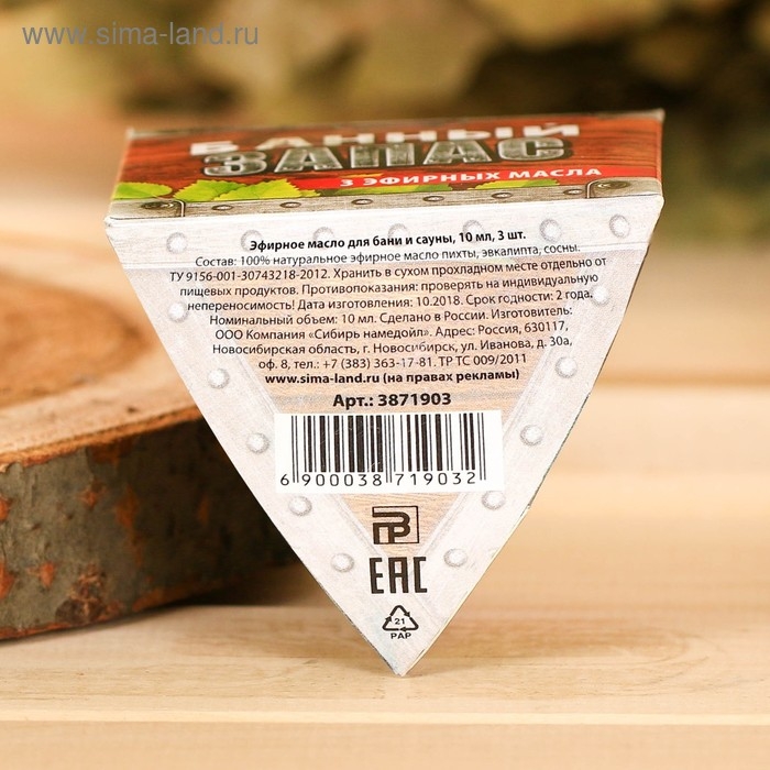 Набор 3 эфирных масла 10 мл "Банный запас" пихта, эвкалипт, сосна