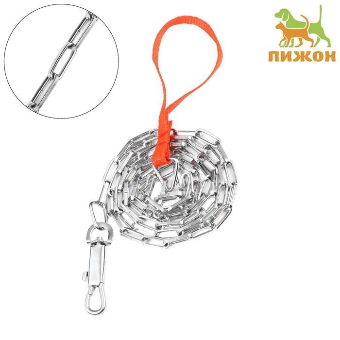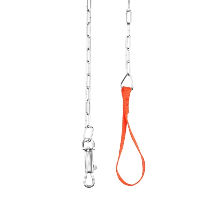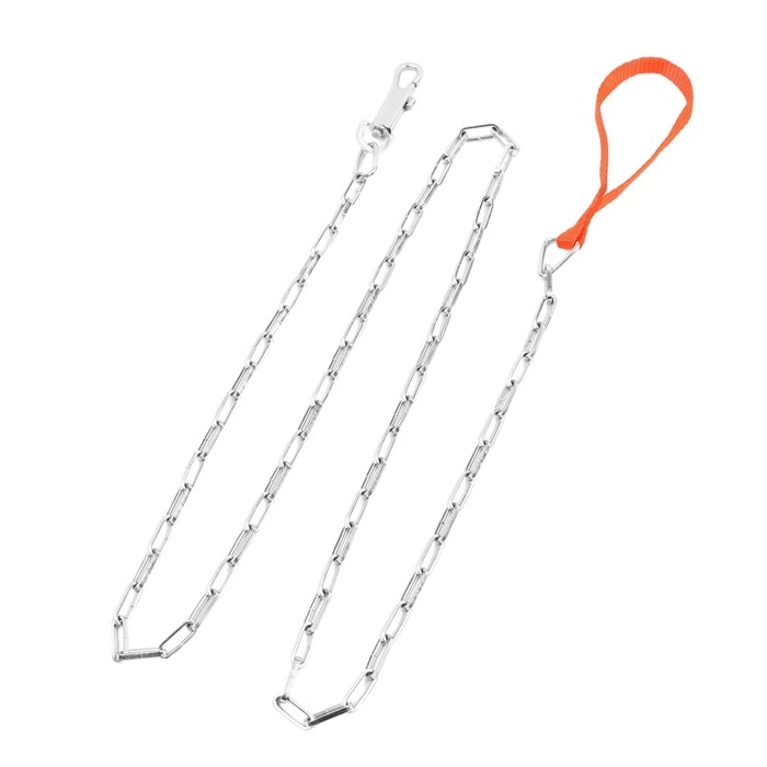 Поводок должен быть прочным и надежным. Металлический поводок полностью соответствует этим требованиям, плюс ко всему это красивый и износостойкий аксессуар. Поводок состоит из хромированной цепочки и мягкой нейлоновой ручки. Ручка прошита армированной нитью, удобно располагается в ладони и не натирает при натяжении. Поводок оснащен стальным карабином.