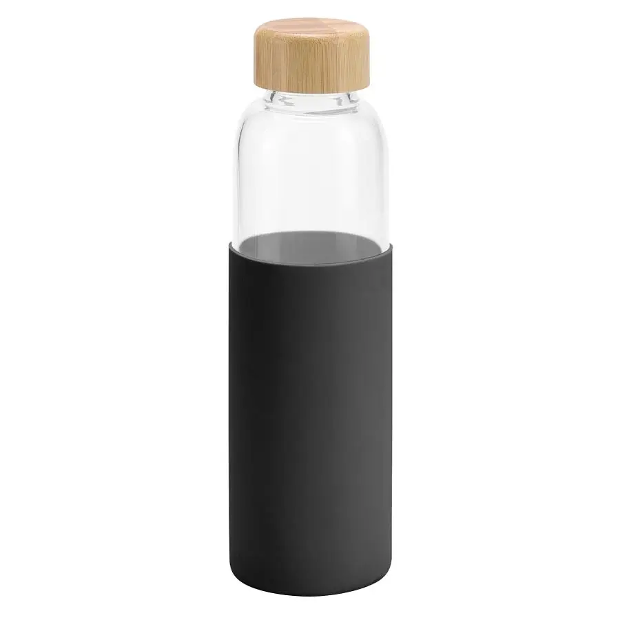 Бутылка со стеклянной колбой и крышкой из бамбука — изящное решение для тех, кто предпочитает природные материалы. Яркий силиконовый чехол защищает колбу от повреждений.