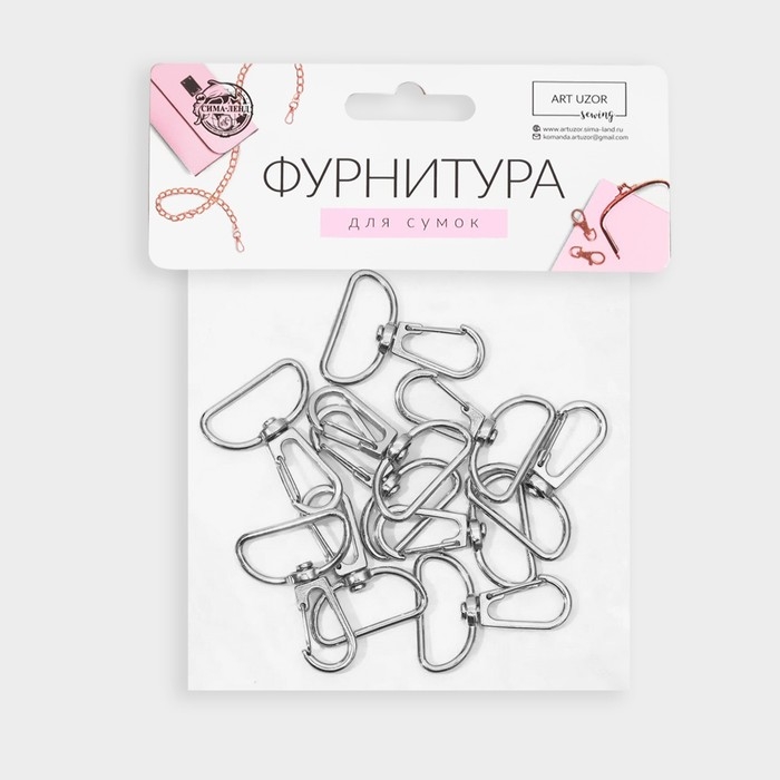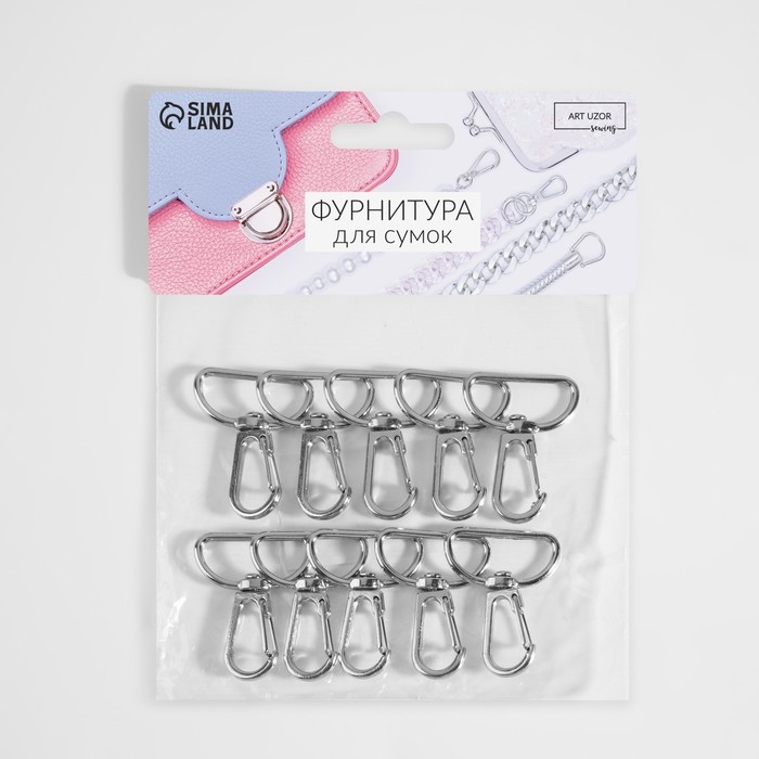 Карабин металлический, 39 × 31 мм / 25 × 2,2 мм, 10 шт, цвет серебряный