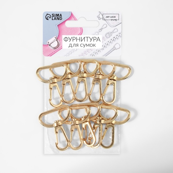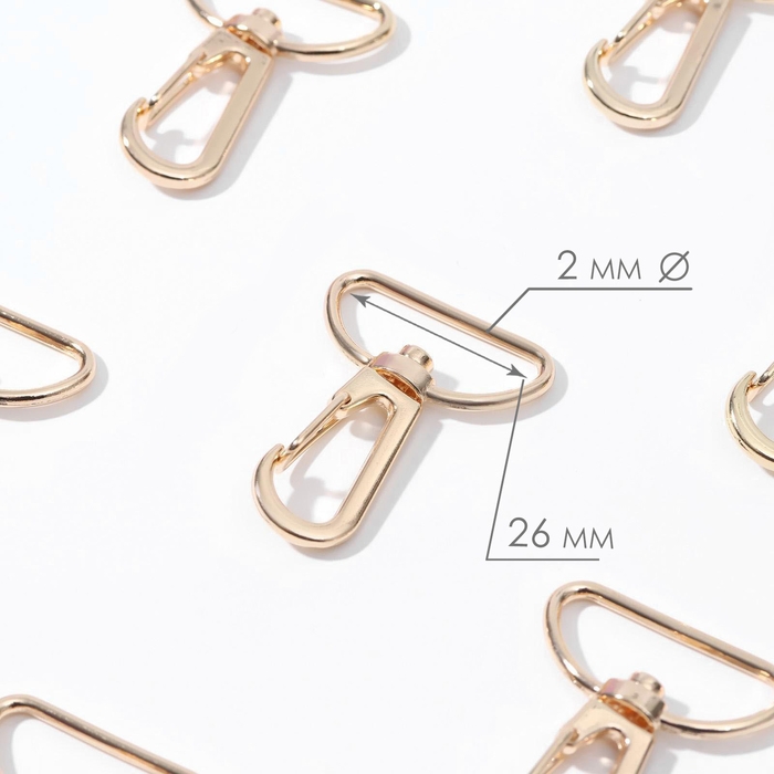 Карабин металлический, 39 × 30 мм / 26 × 2 мм, 10 шт, цвет золотой
