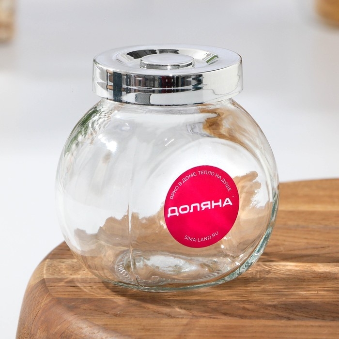Банка стеклянная для хранения сыпучих продуктов Доляна «Блеск», 200 мл, 6×8,3 см, с пластиковой крышкой