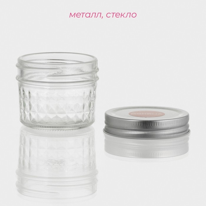 Банка стеклянная для хранения сыпучих продуктов Доляна «Кристалл», 160 мл, 7×5,5 см, с металлической крышкой