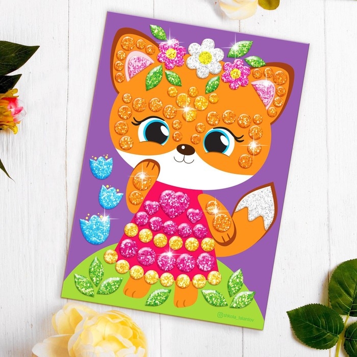 Аппликация стикерами форменными стикерами «Лисичка», набор для творчества, стикерная мозаика — это простая и эффектная аппликация!