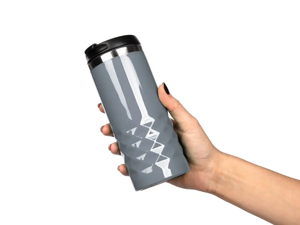 Покрытие кружки Prism напоминает глянцевую эмаль, — и рельефная поверхность корпуса дополнительно подчеркивается яркими бликами.