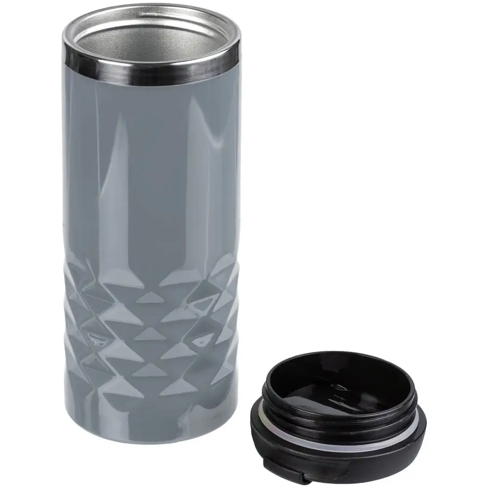 Двухслойная конструкция из пластика снаружи и пищевой нержавеющей стали внутри. Герметичная завинчивающаяся крышка с откидным клапаном для питья.