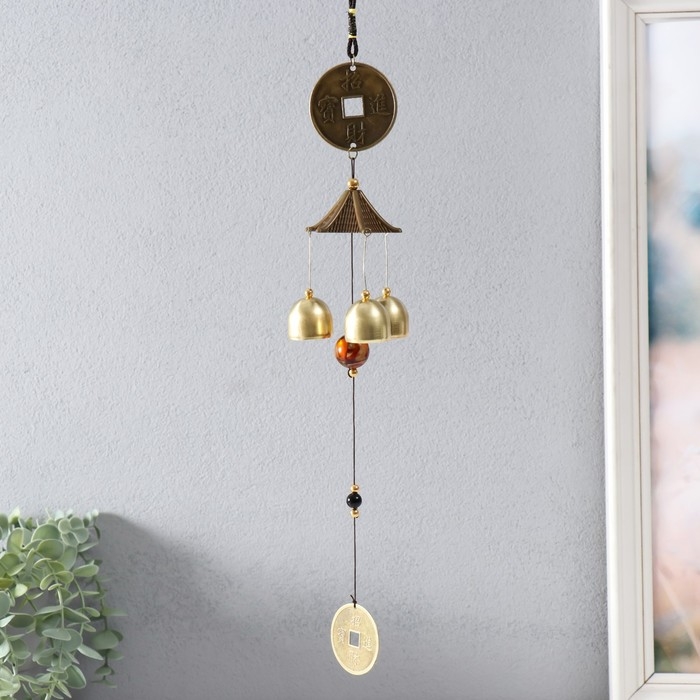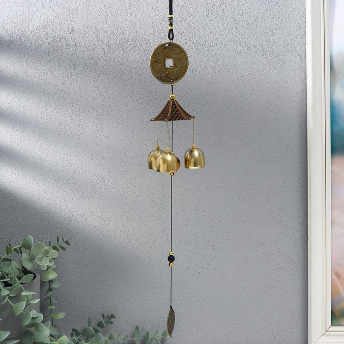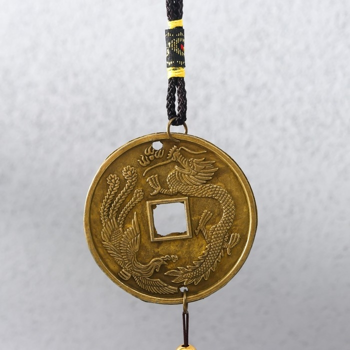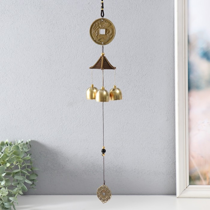 Музыка ветра металл "Дракон на монете" 3 колокольчика 45 см