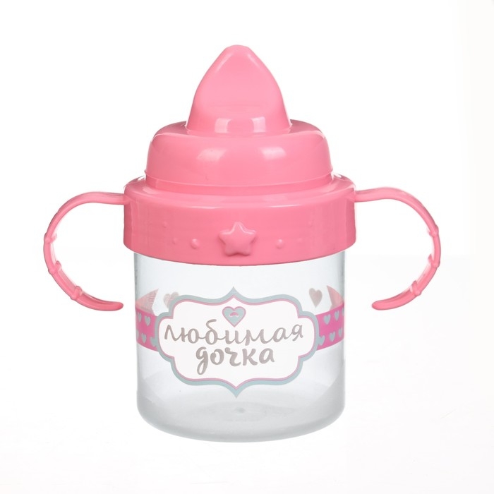Поильник детский с твёрдым носиком «Доченька», 150 мл., с ручками, цвет розовый